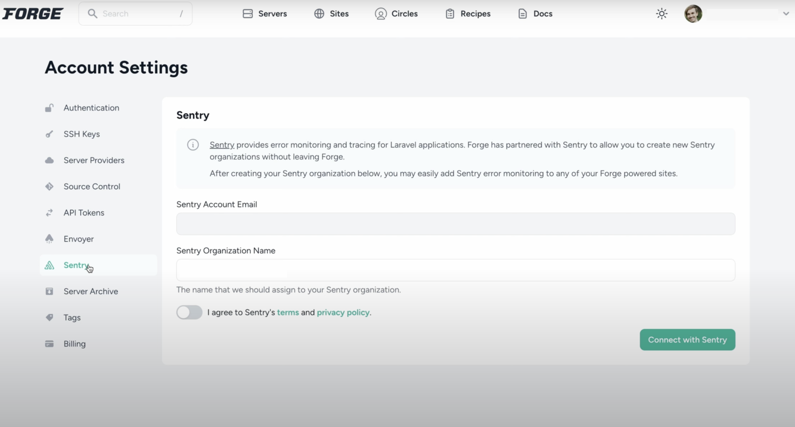 $ php artisan vendor:publish --provider="Sentry\Laravel\ServiceProvider"